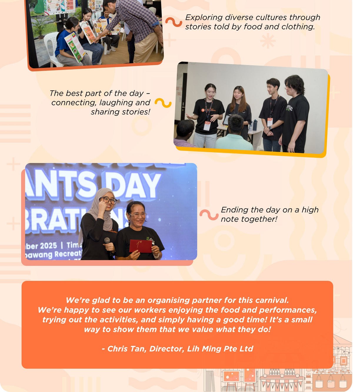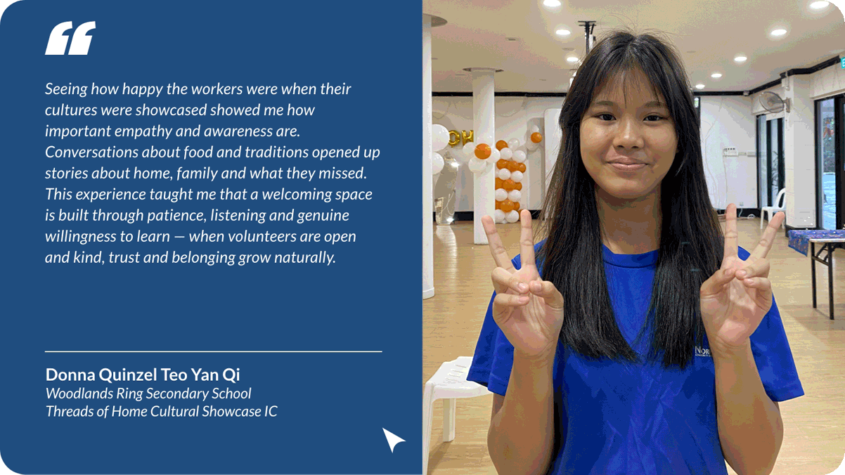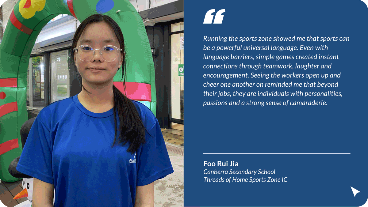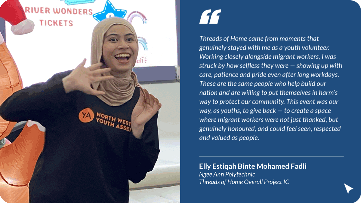 The North West Youth Assembly capped off an eventful year with its signature project – a lively carnival to celebrate International Migrant Workers' Day. Organised in collaboration with the Ministry of Manpower, the event was packed with fun activities, performances, and great food, bringing volunteers and migrant workers together for a day of joy and appreciation.