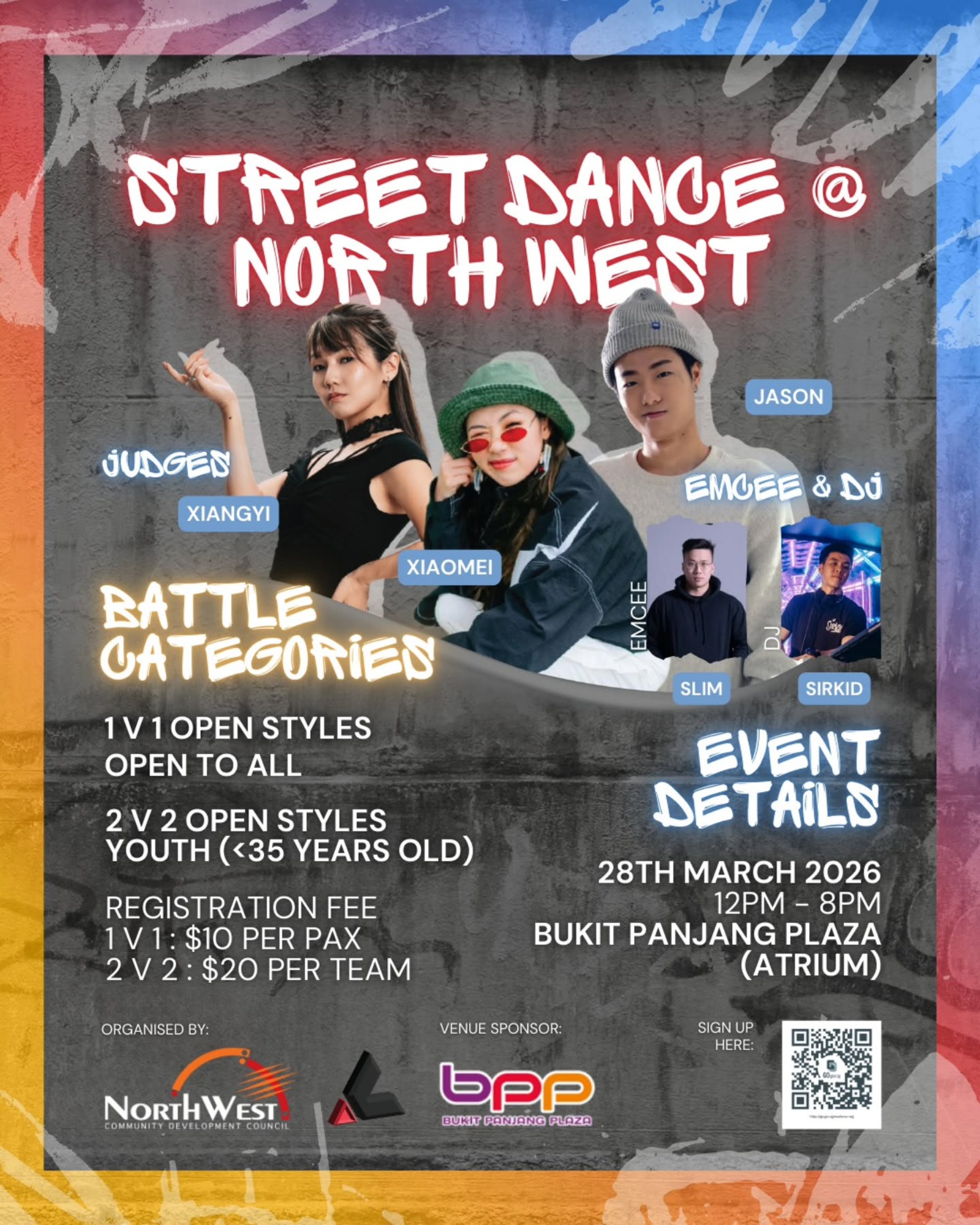 Street Dance @ North West is back for its second run on 28 March 2026! Think you've got the rhythm, mindset and energy to rule the dance floor? Join us for an exciting open style street dance battle where you'll have to serve your best moves to match whatever beat that drops!